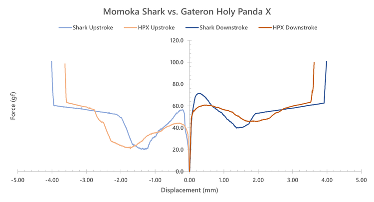 - 最大のライバルであるFekerPandaと比較するとタクタイルフォースはFekerの方が高いが、なめらか(下り幅)はやや緩やかかなと