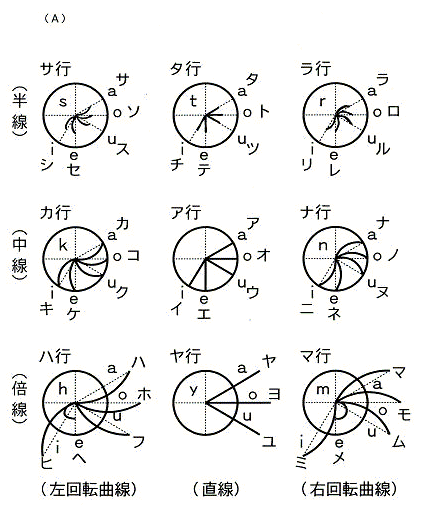 「わをん」は、「わ」は半円の文字。「を」は「お」と同化。「ん」は他の文字にくっつけて表現。